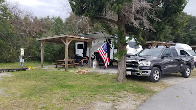 Our second (and current) Private Campground is here at Onslow Beach FamCamp at Camp Lejeune Marine Corps Base near Jacksonville, NC. This site has the most hookups we have had so far and the price (off season) can't be beat. Unfortunately for muggles, this campground is truely private as you have to have served in or for the military or government to gain access.
